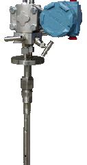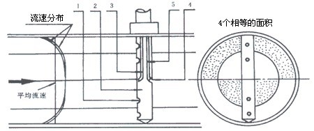 均速管流量計,它是一根沿直徑插入管道中的中空金屬桿,在迎向流體流動方向有成對的測壓孔,一般有兩對,其外形似笛。迎流面的多點測壓孔測量的是總壓,與全壓管相連通,引出平均全壓p1,背流面的中心處開有一只取壓孔,與靜壓管相通,引出靜壓p2。均速管是利用測量流體的全壓與靜壓之差來測量流速。